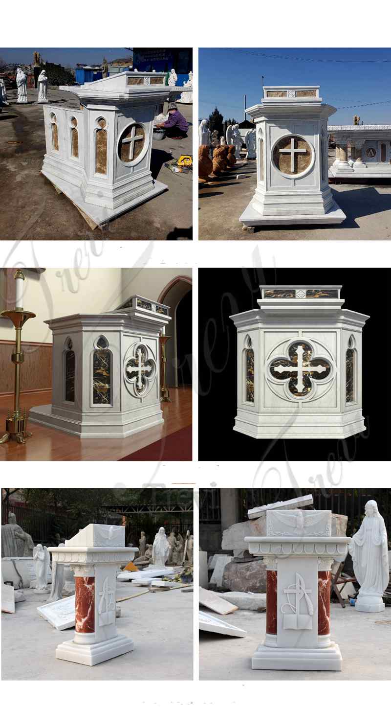 The Trevi factory used natural marble to make this church pulpit for sale. Natural marble has the incomparable advantages of artificial marble. The extremely high density and hardness make pulpits made of natural marble very hard and have a long service life. So, if this Catholic church pulpit is properly cleaned in a church, it would still look like new after decades of use. Our marble pulpit has good quality assurance, customers could buy with confidence.
