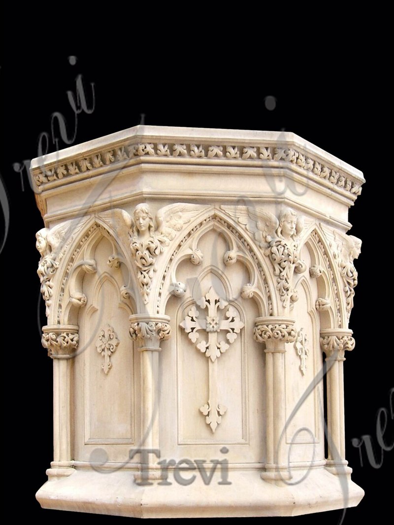 What delicate and sacred church pulpit furniture of white marble it is! This pulpit of Trevi is hand-carved from pure natural marble. If you are also interested in this forum, please feel free to consult us.