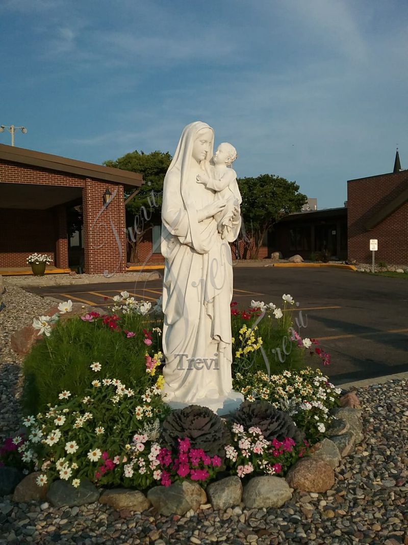 This mother mary holding Jesus statue is perfect for anyone seeking to create a serene and spiritual atmosphere in their home or place of worship. It is sure to be a cherished addition to any collection of religious art and a reminder of the enduring power of faith and love. And Trevi could custom any size of this mary and Jesus statue for sale. Welcome to contact us for more information.
