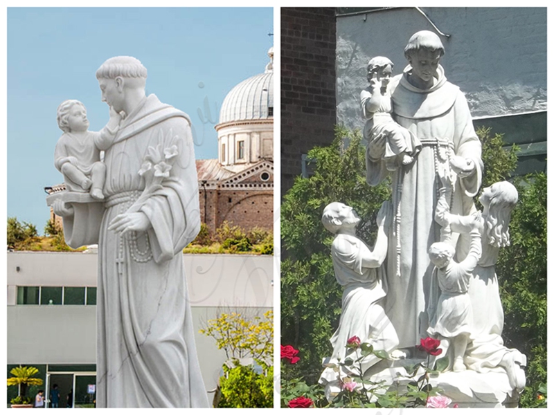 Our life size marble sculpture of Anthony and baby Jesus is the crystallization of faith and craftsmanship, carrying the hard work of the sculptors and their respect for the saint.