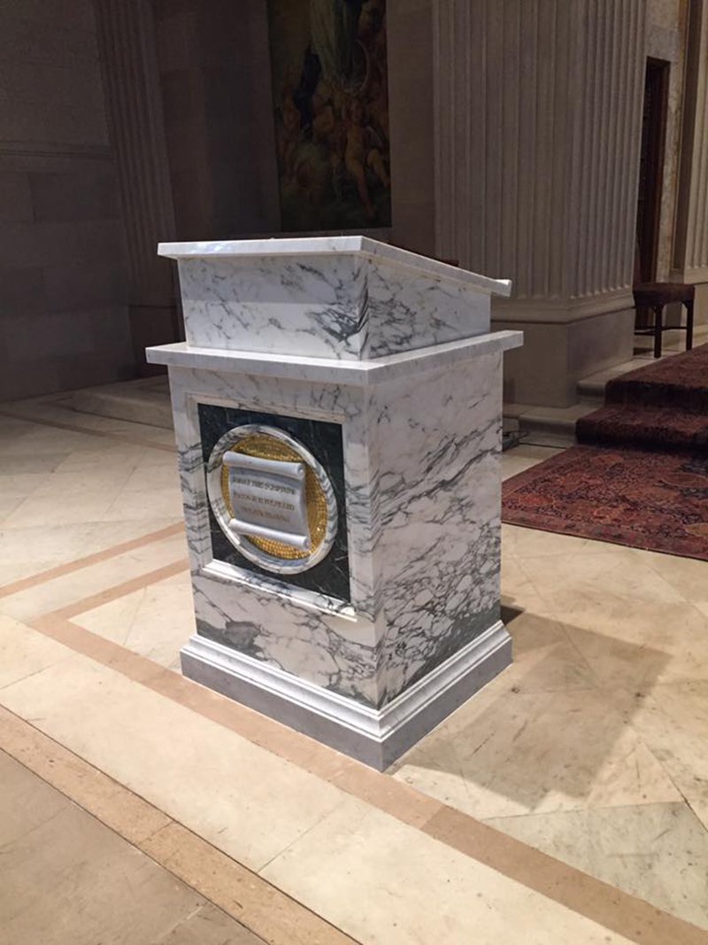 Carved from the finest Carrara marble, This marble pulpit is a testament to timeless elegance and superior design. Trevi factory takes pride in its advantages that make such masterpieces possible.