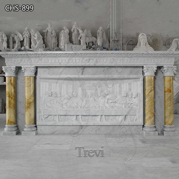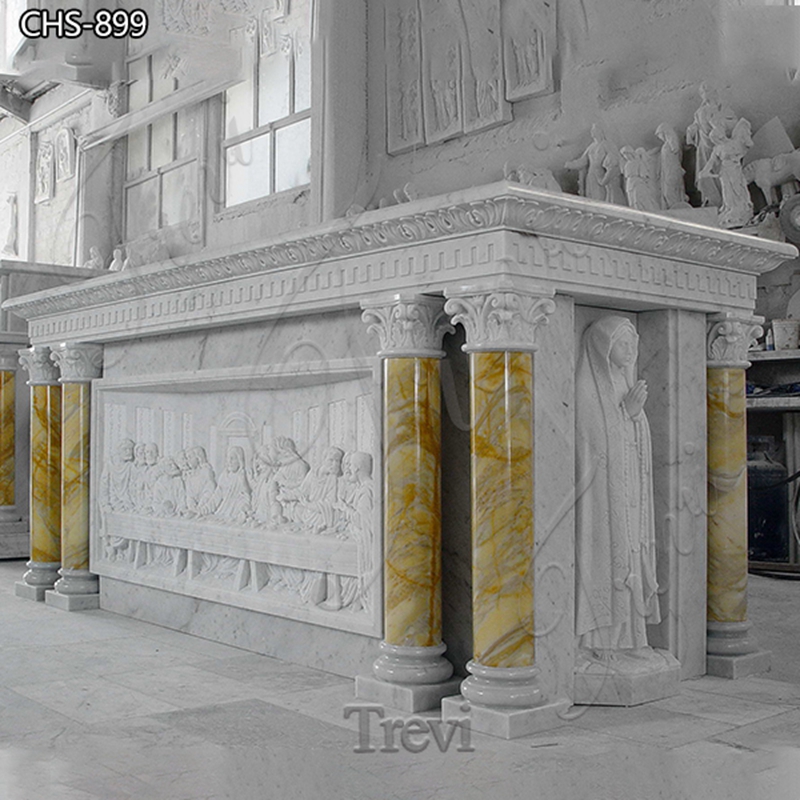 This is a Catholic marble altar carved with the Last Supper. It has a high look and desirability and could add more Catholic flavor to your church.