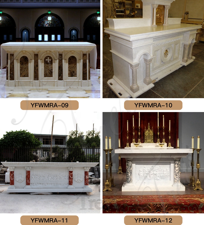 We have been engaged in marble religious sculpture for almost 40 years. A very large number of Catholic altars were produced and sold. Our altars come in a variety of styles and colors. There are square and rectangular in shape. And there are solid colors and mixed colors. Customers could choose a suitable altar according to their needs. If you want to customize it, we also fully support it.