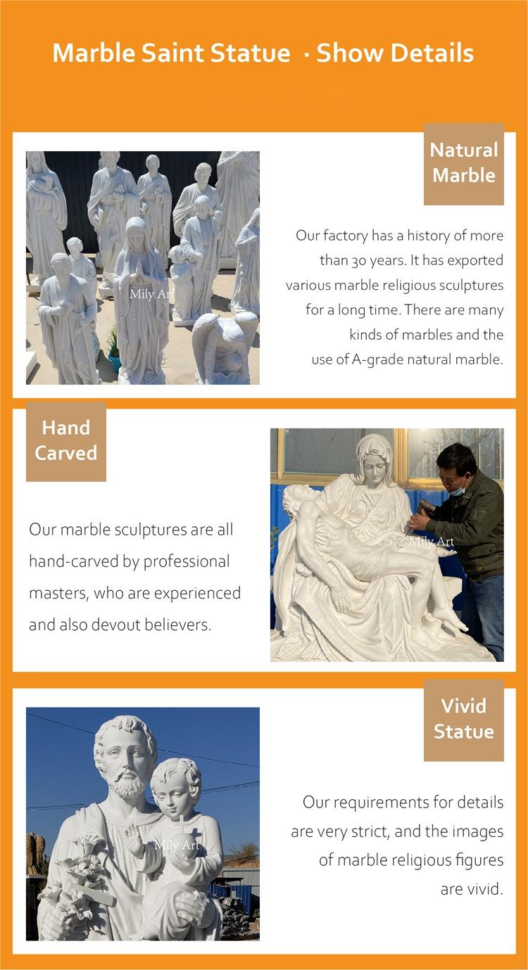 1. TREVI is a sculpture production factory that was established in 1983. With decades of experience in marble carving, we are highly skilled in creating realistic and vivid marble statues of religious figures, including saint statues. Our artists have been trained in the ancestral techniques of marble carving since their childhood, ensuring the highest level of craftsmanship.