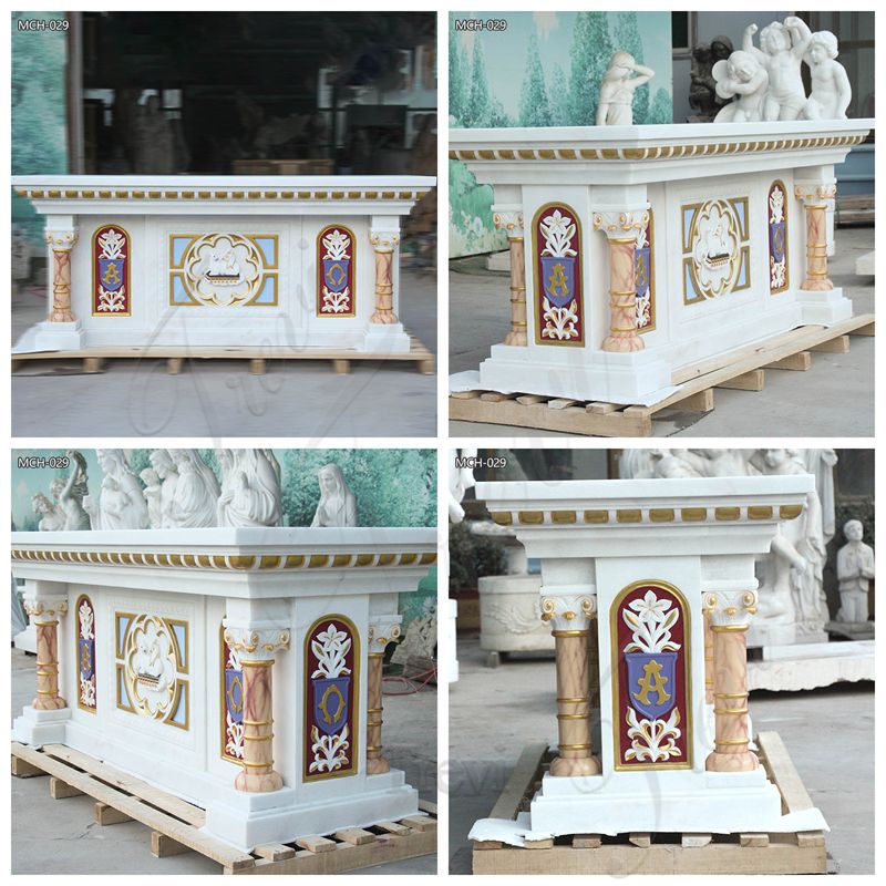 This catholic marble altar is made of skilled craftsmanship and excellent materials. It is a carrier of religious connotation, and a perfect fusion of quality and aesthetics, meeting your dual needs for durability and visual effects.