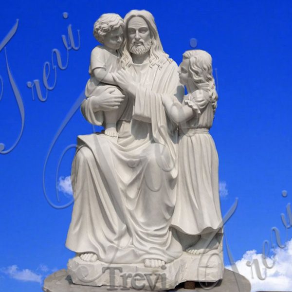 This white marble Jesus with Children garden statue is purely hand-carved by Trevi’s experienced artists. Our artists use superb carving skills to present faithfully Jesus’s kind appearance and the reverent expressions of the children. If you want to have this statue, come to and contact us.