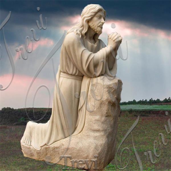 This praying Jesus statue usually depicts Jesus in a kneeling posture when he is praying or facing great pain. This statue show the folds of Jesus’ robe, the subtle expressions on his face, and the natural curves of his body, reflecting our artist’s skill and attention to detail.
