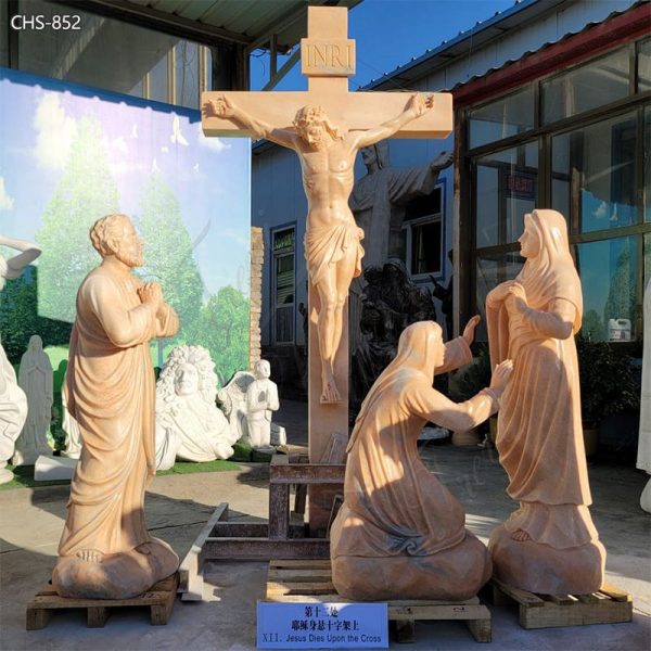 Crafted by Trevi Factory, this exquisite marble Jesus on the Cross sculpture is a profound depiction of Jesus in the midst of crucifixion.