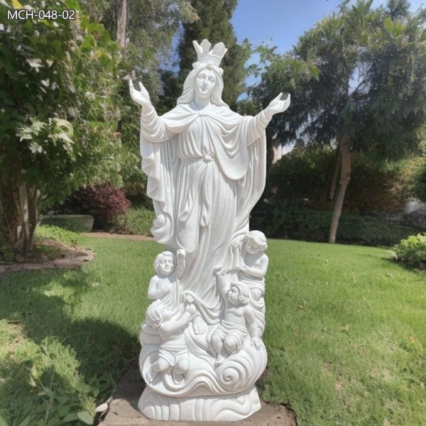 The Our Lady Queen of Peace statue in our collection is meticulously carved using 100% natural marble, ensuring both its exceptional quality and significant decorative value. This statue captures the essence of peace and serenity associated with the revered figure it portrays.