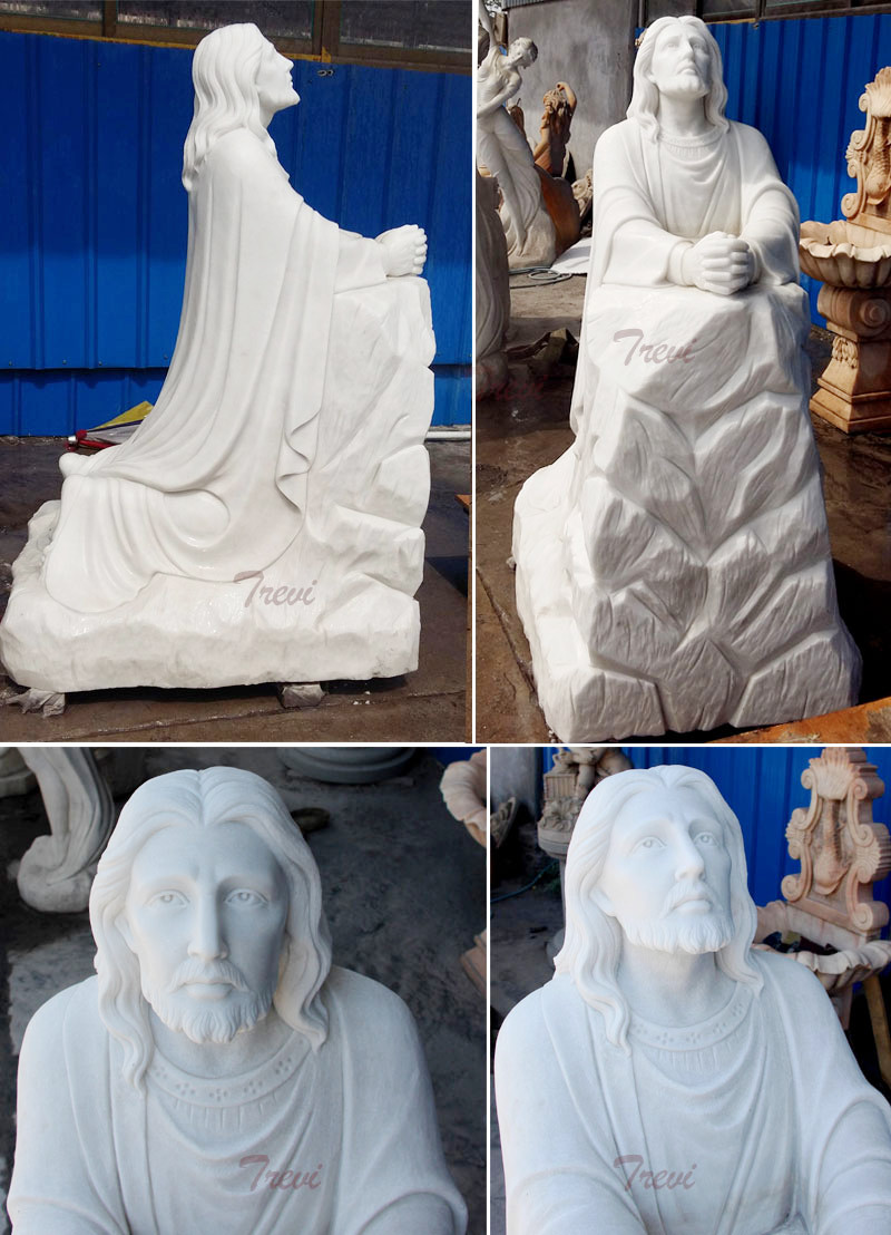 This praying Jesus statue is shown as Jesus kneeling on his knees, with his head slightly looking up, and his hands folded. The expression on his face often shows deep pain and piety, and the folds of his robe and the lines of his body are also portrayed in detail. This marble kneeling Jesus statue is not only a work of art but also a spiritual symbol that conveys Jesus’ humility and piety.