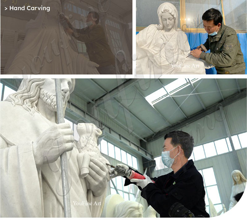 This Saint Matthew statue is made of the highest quality white marble. Our artists will go to the material factory to select the most suitable and high-quality white marble. Our artists will go to our material supply factory to select a whole piece of the best quality marble as the raw material. And spending a lot of days carving the general outline of the Saint Matthew statue. Then they will use fine carving knives to carve the details. You can see the degree of care of our artists from every detail of the statue’s carving.
